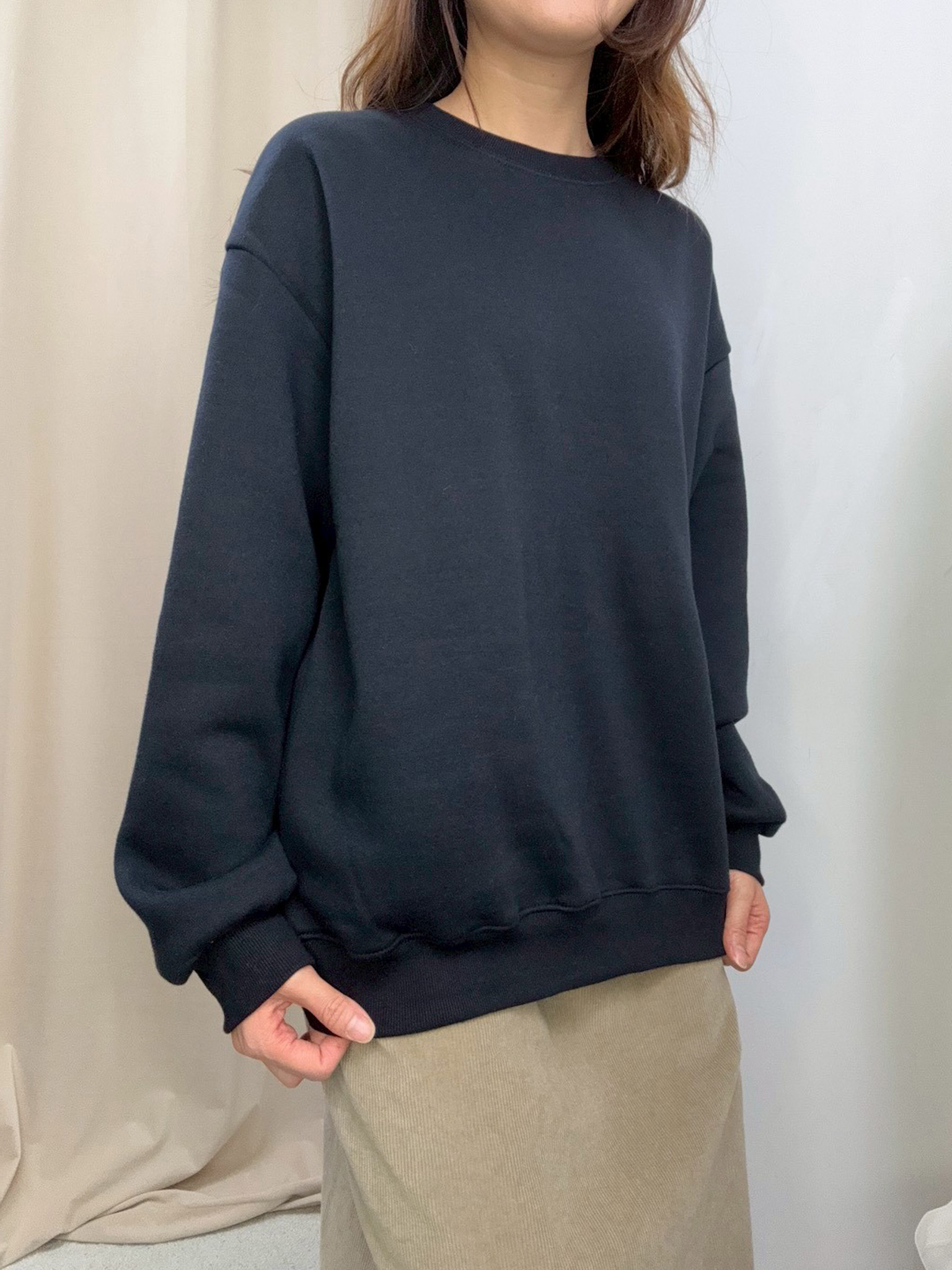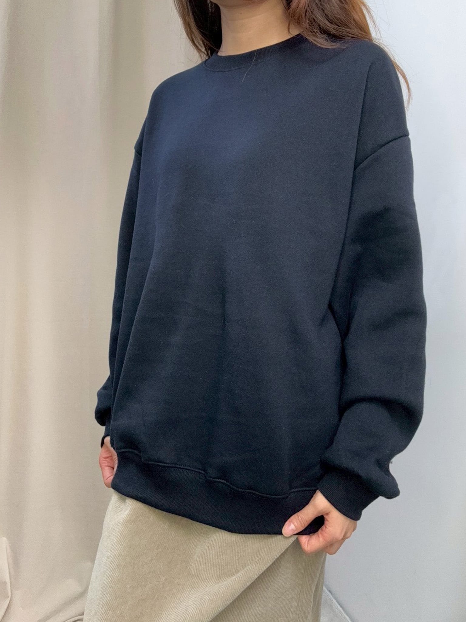 加絨素色衞衣(深藍色)