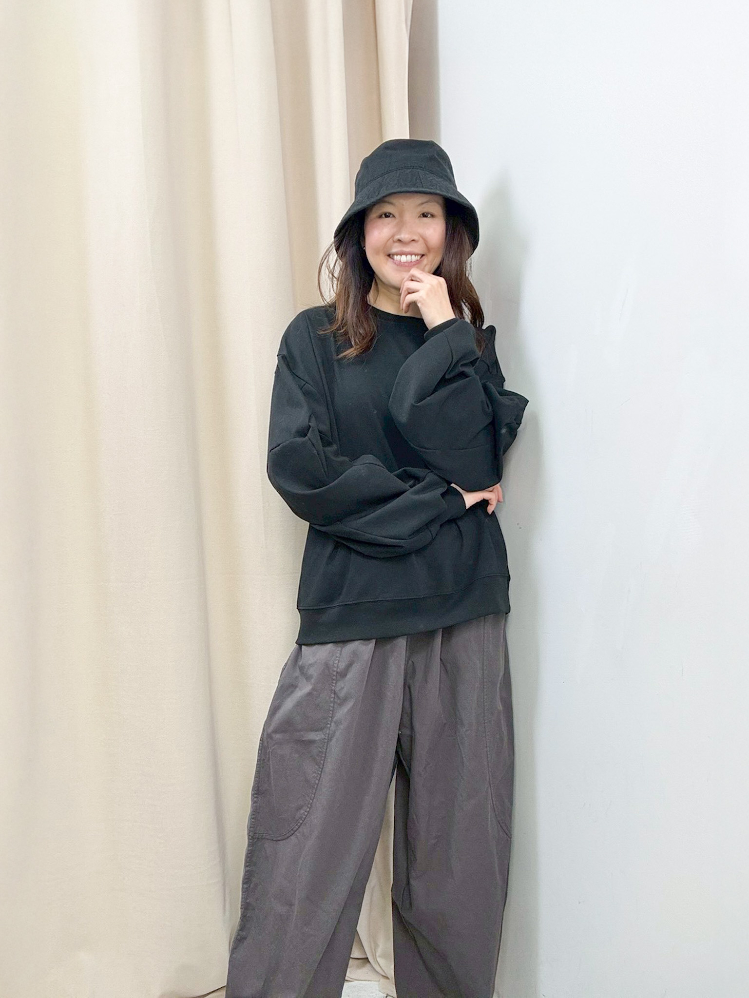手袖設計造型上衣(黑色)