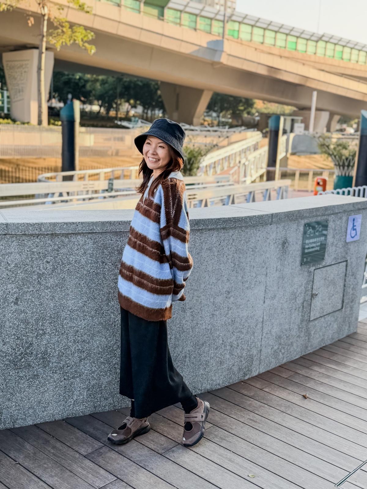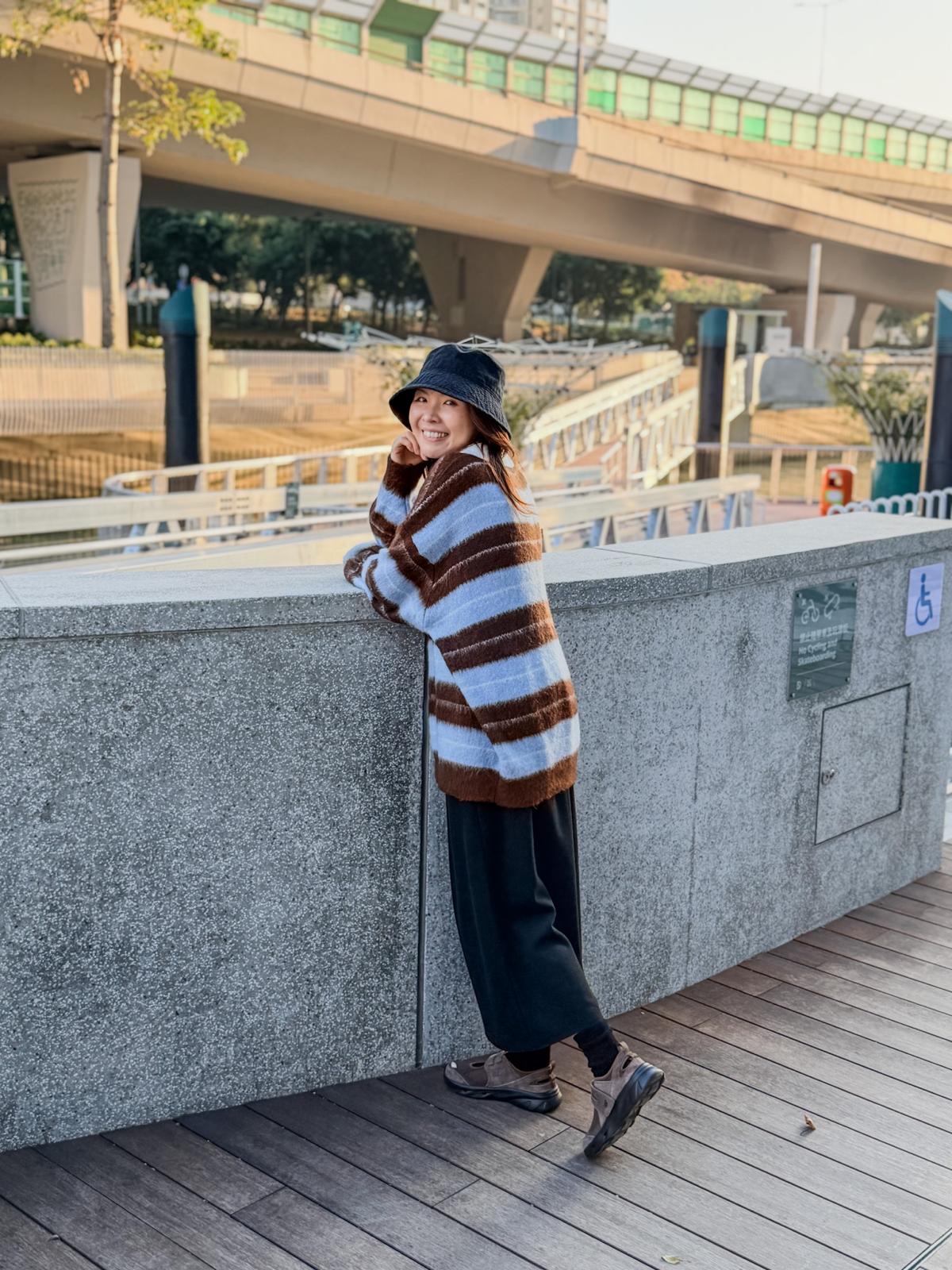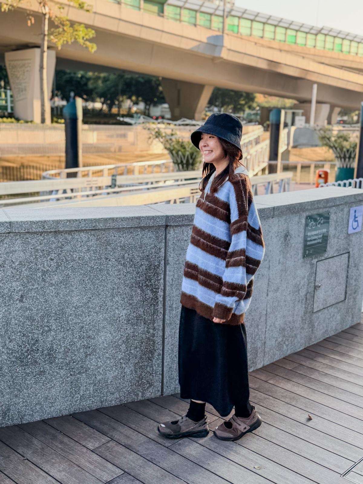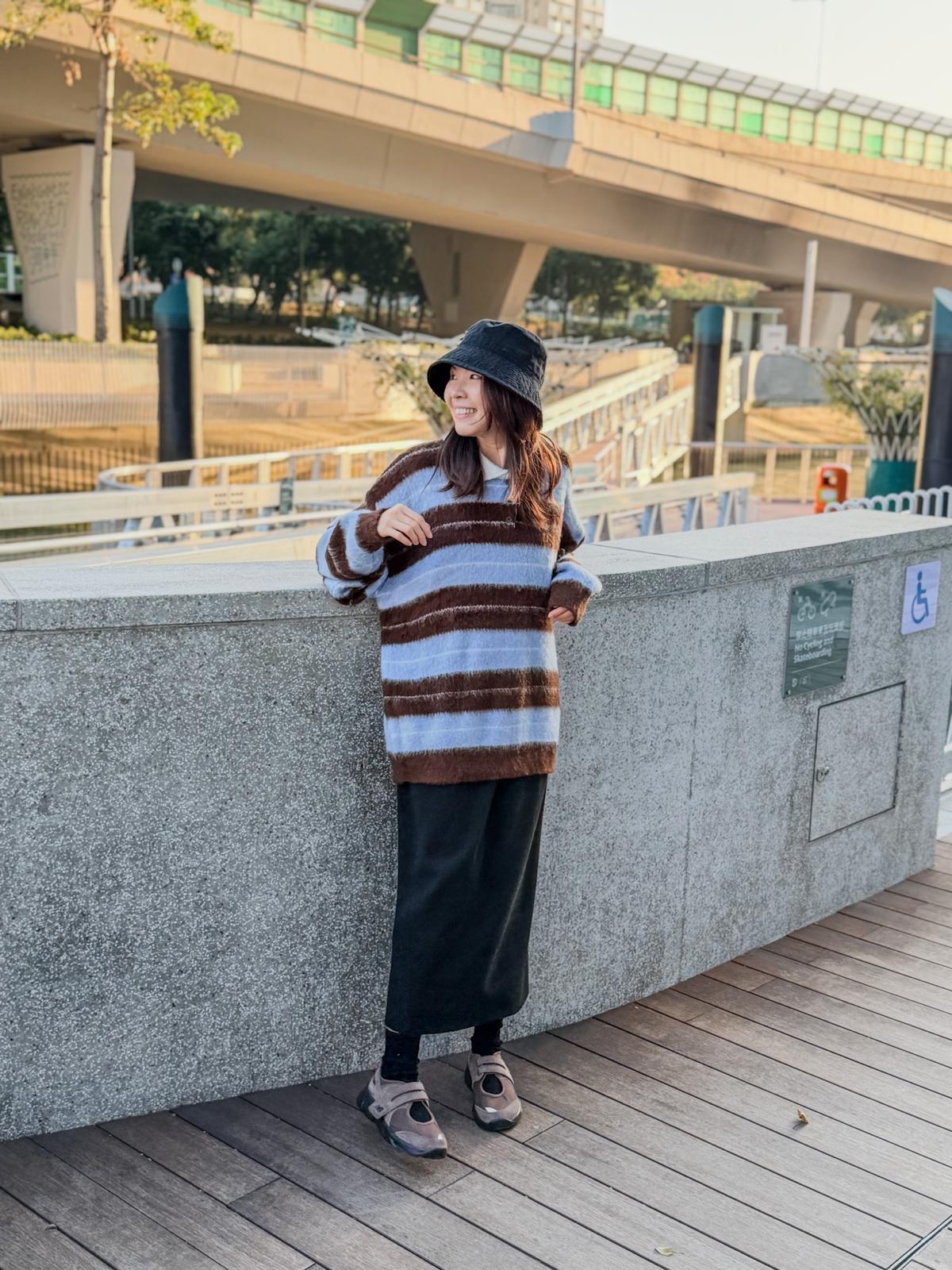 毛毛橫間polo上衣(淺藍啡間)