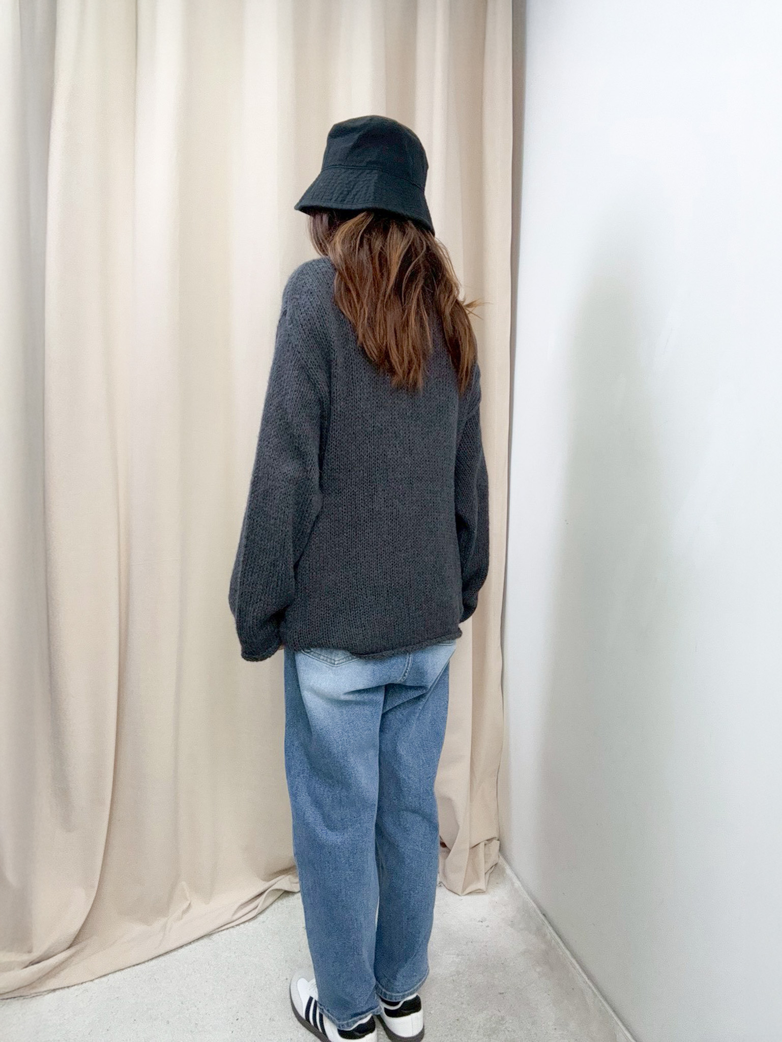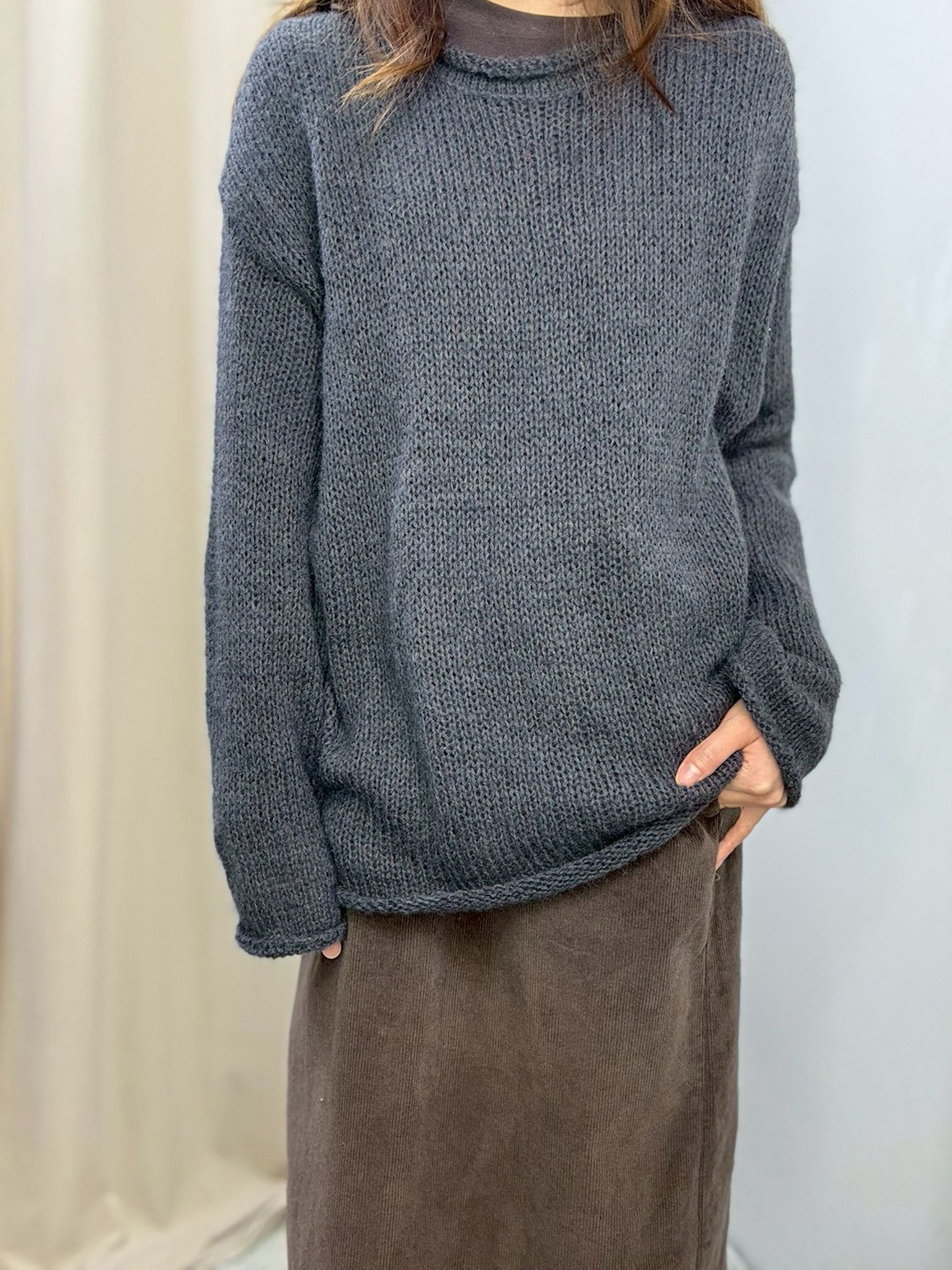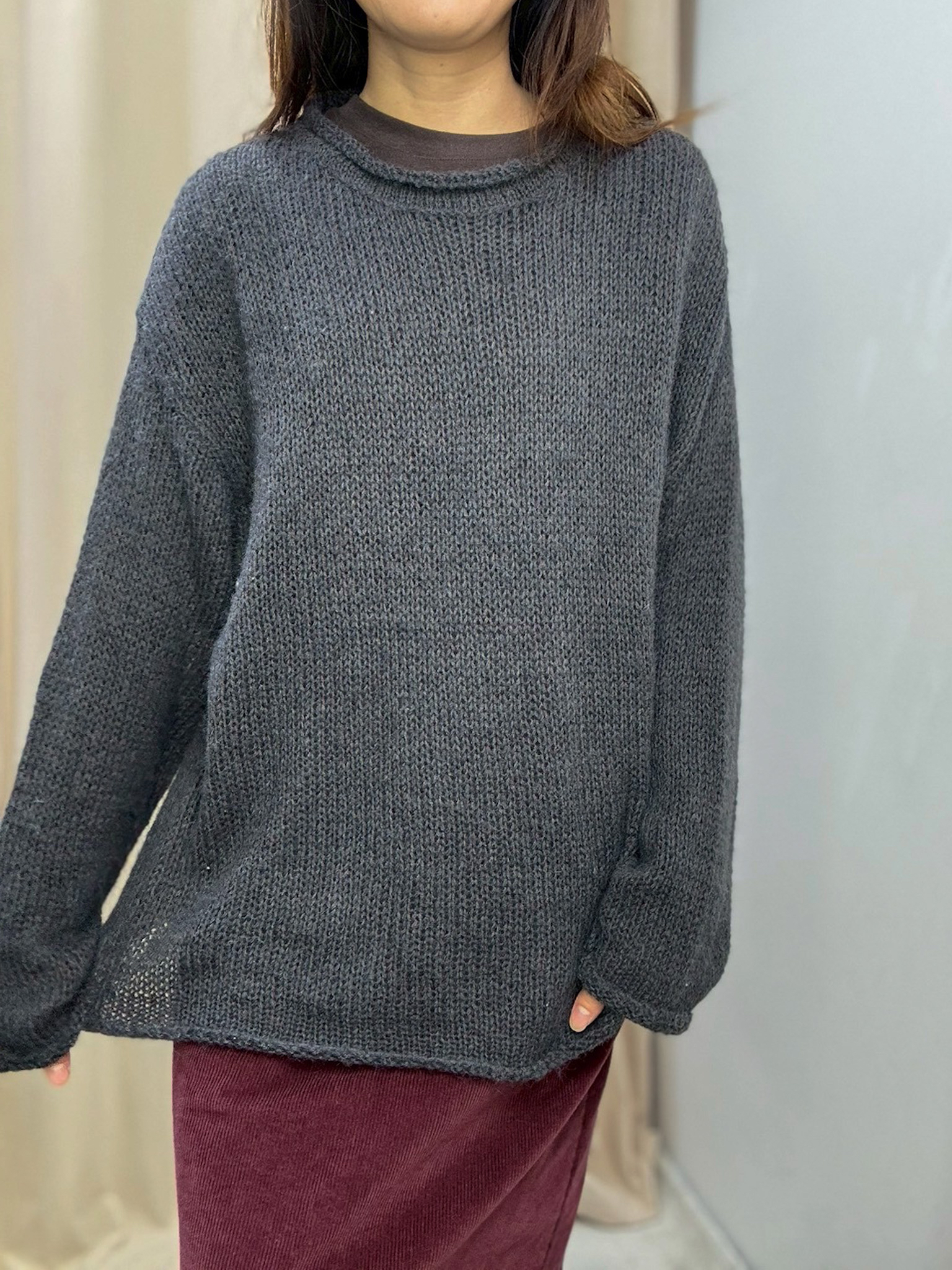 鬆身透膚針織上衣(深灰色)