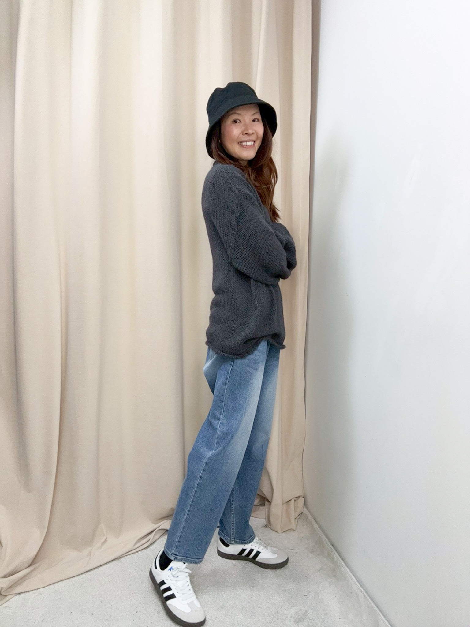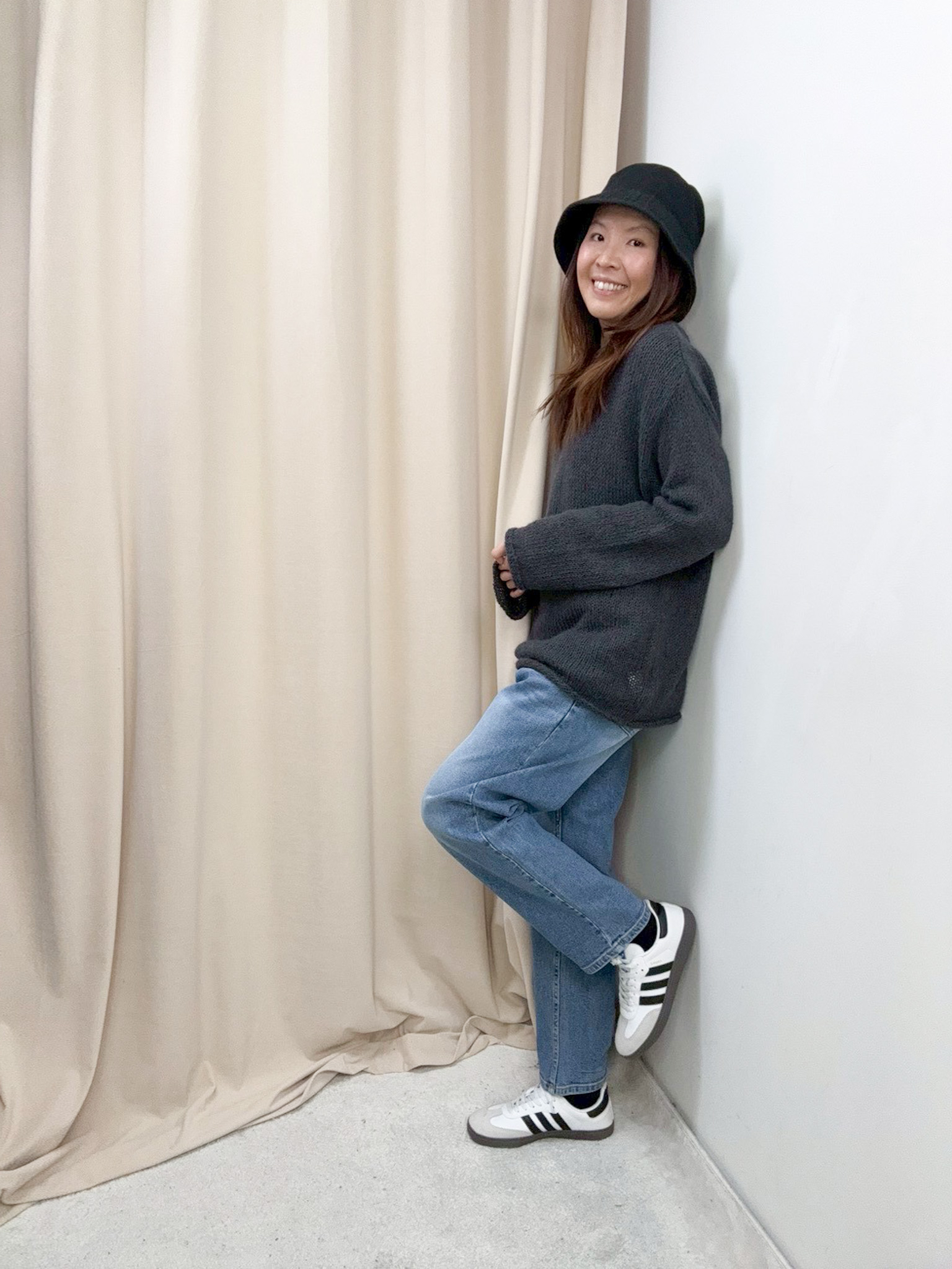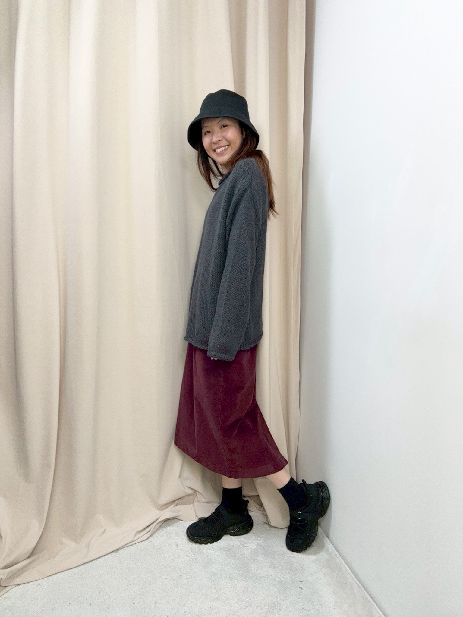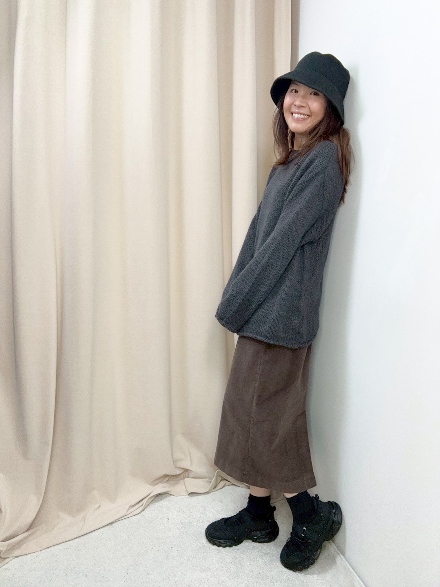鬆身透膚針織上衣(深灰色)