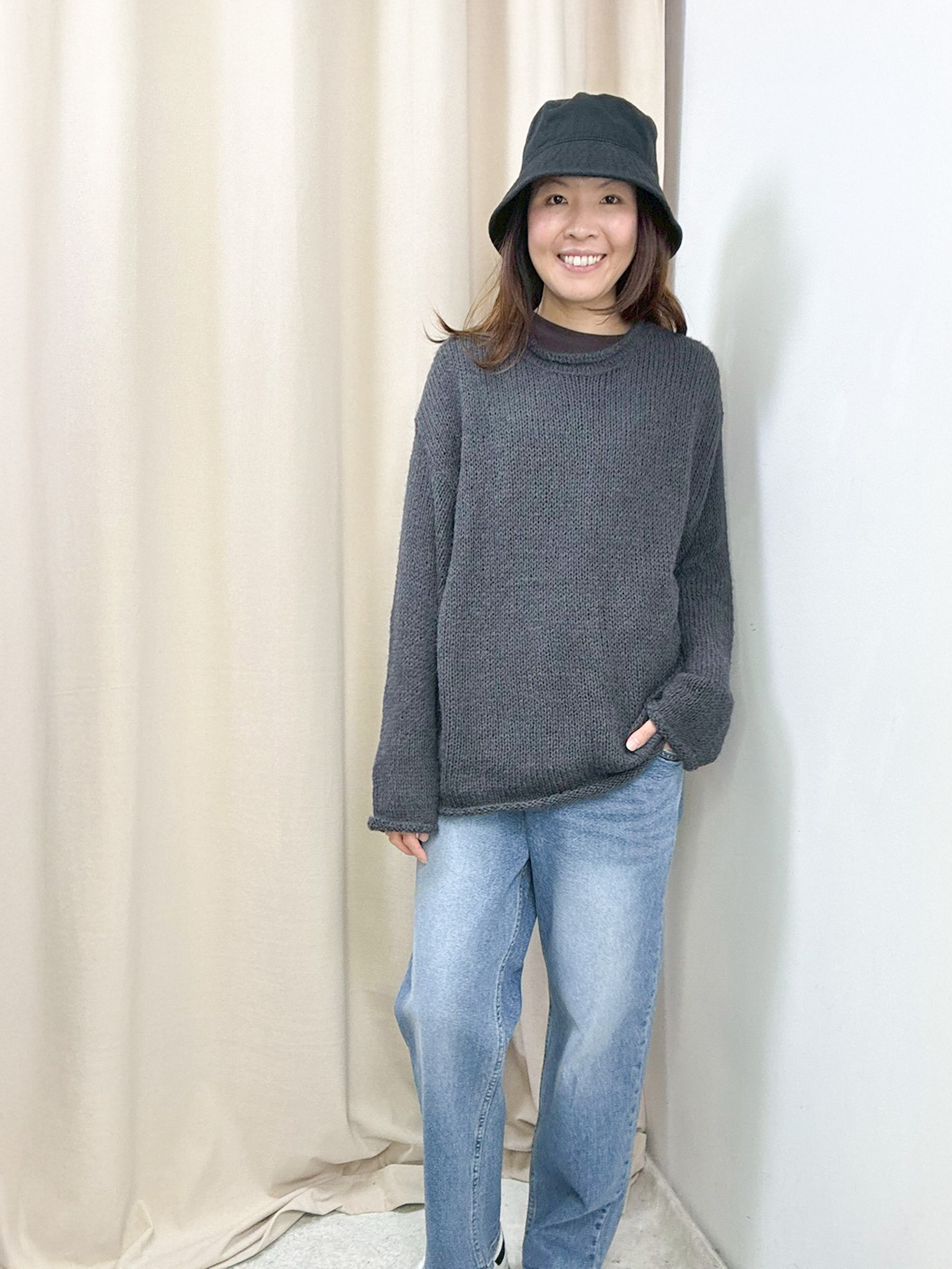 因每人身形比例不同,你可以參考模特兒的身高體型,作為購買之參考。 由於測量方法不同,尺寸數據可能存在1-4CM的偏差。 電腦顯示器不同,商品顏色可能有輕微色差現象。 Free size 平面量度尺寸 胸:65cm 長:66cm Made in Korea Model 160cm *預購商品一般14天*