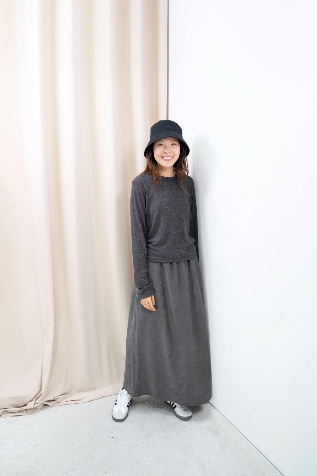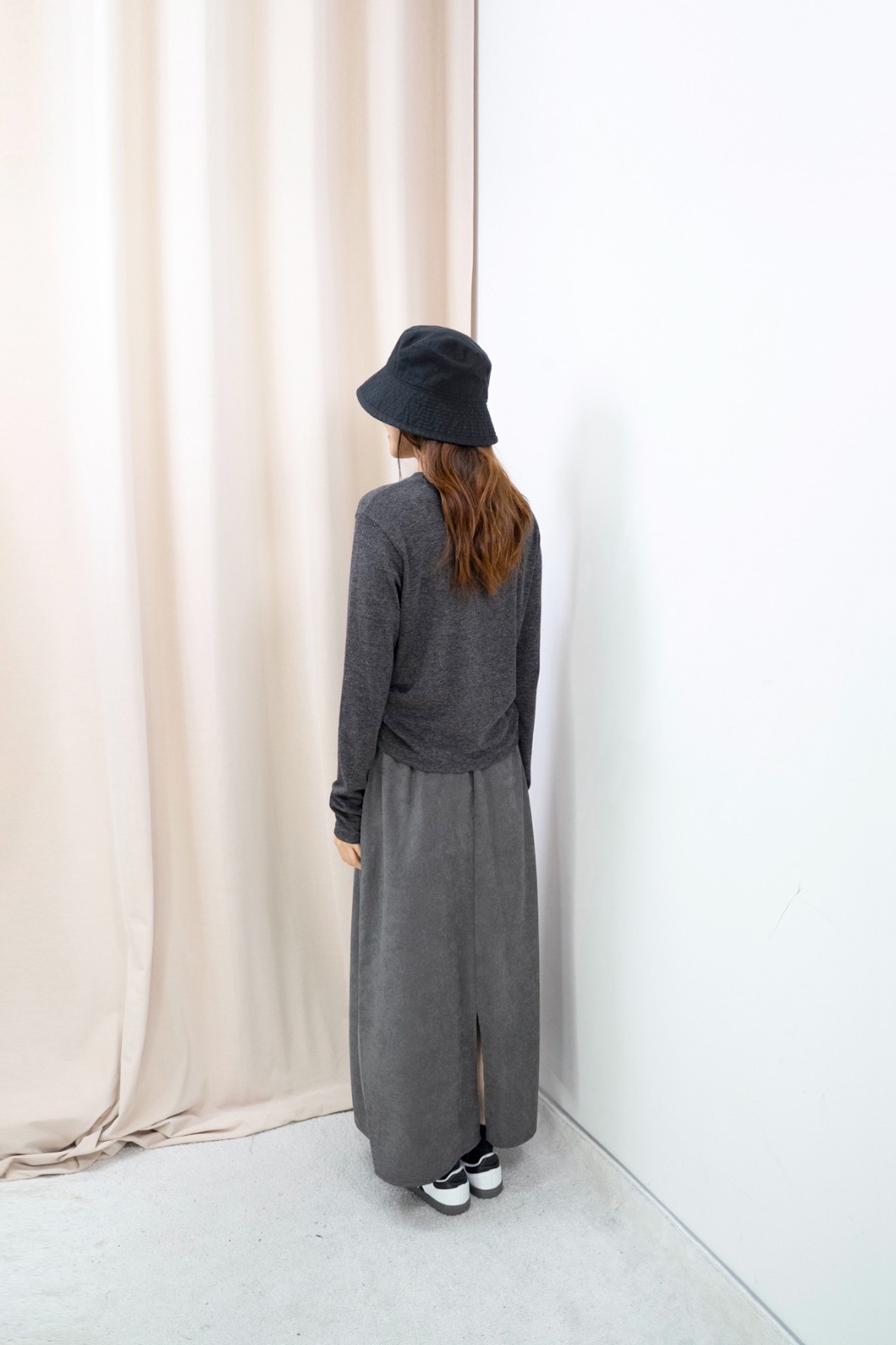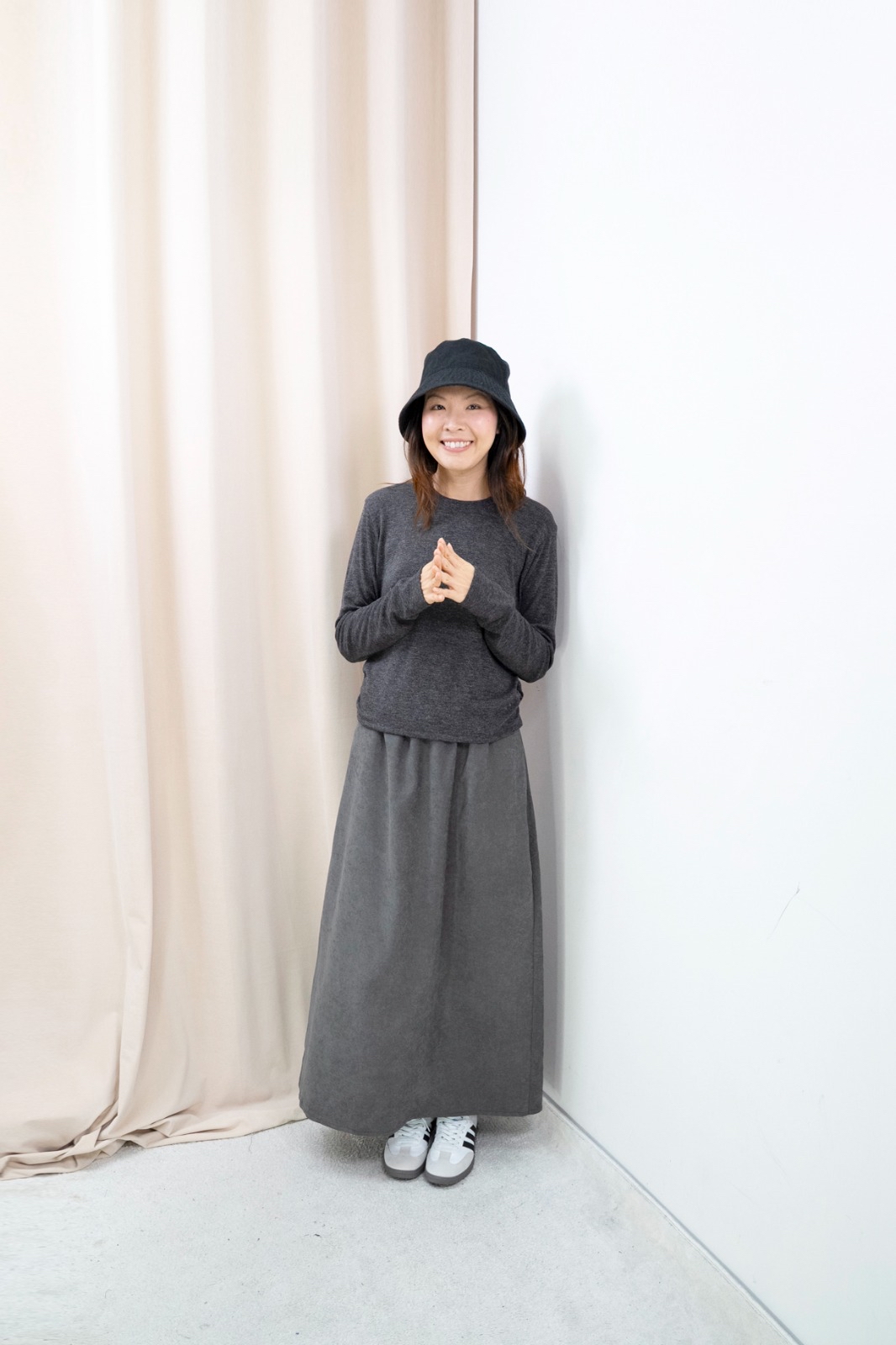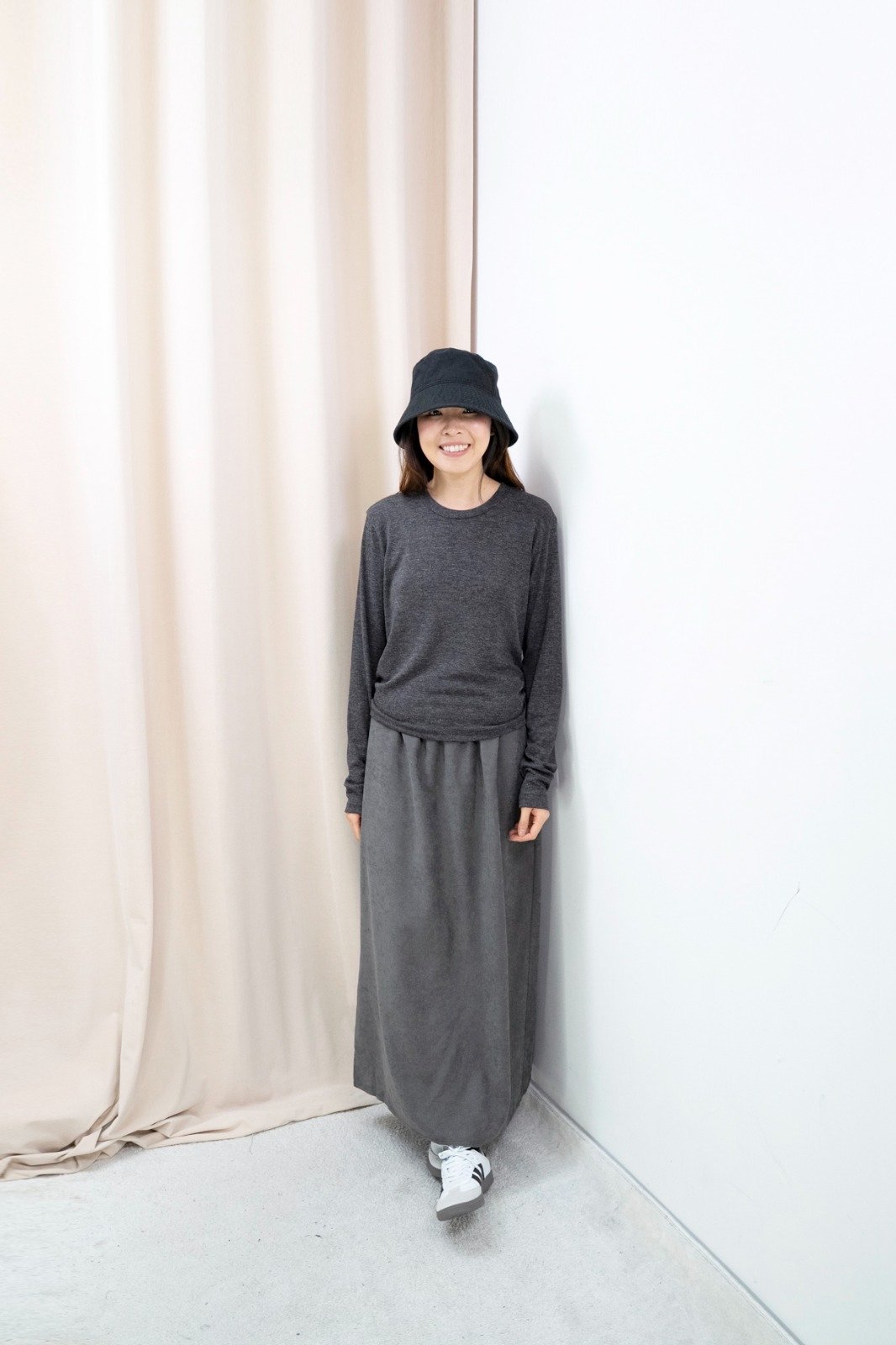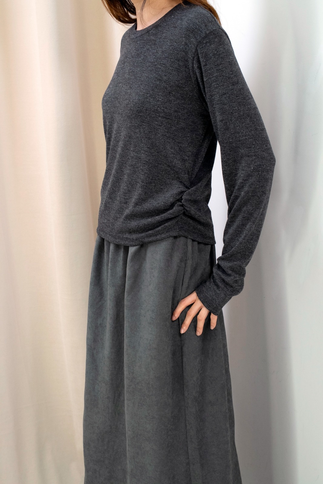 側褶柔彈上衣(深灰色)