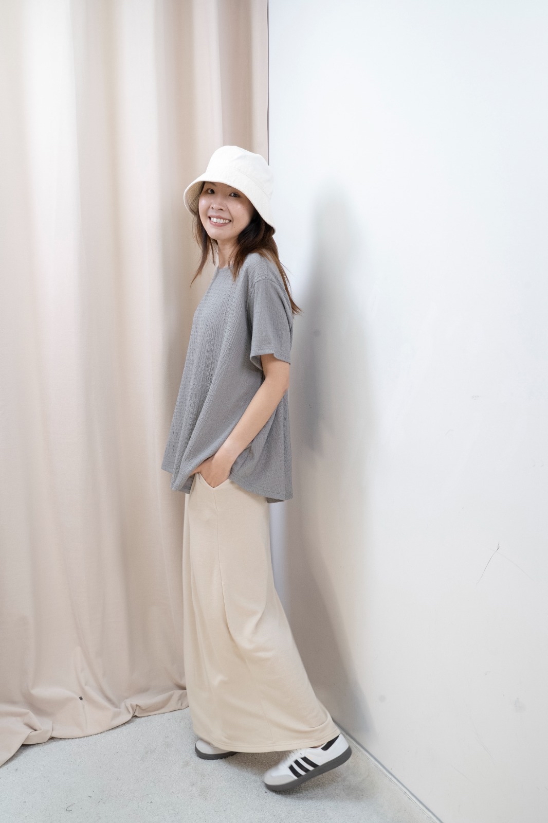 因每人身形比例不同,你可以參考模特兒的身高體型,作為購買之參考。 由於測量方法不同,尺寸數據可能存在1-4CM的偏差。 電腦顯示器不同,商品顏色可能有輕微色差現象。 Free size 平面量度尺寸 腰:34.5-49cm 臀:54.5cm 長:97cm Made in Korea Model 160cm *預購商品一般14天*