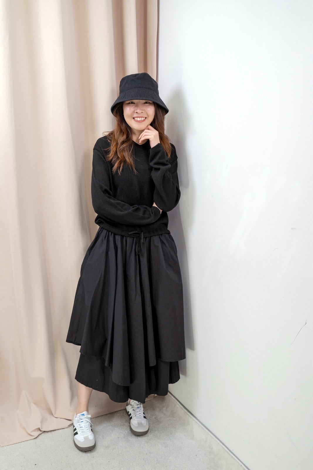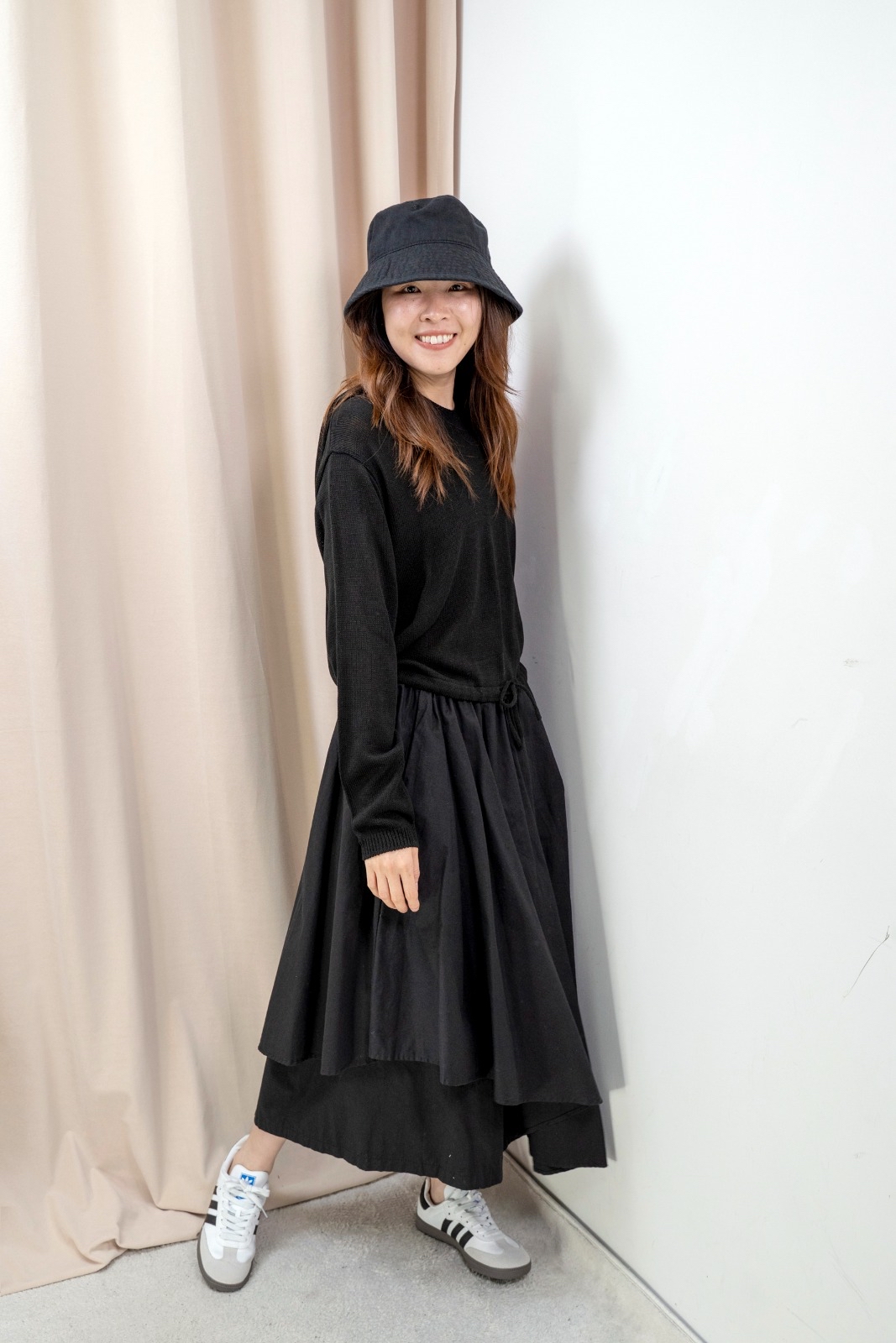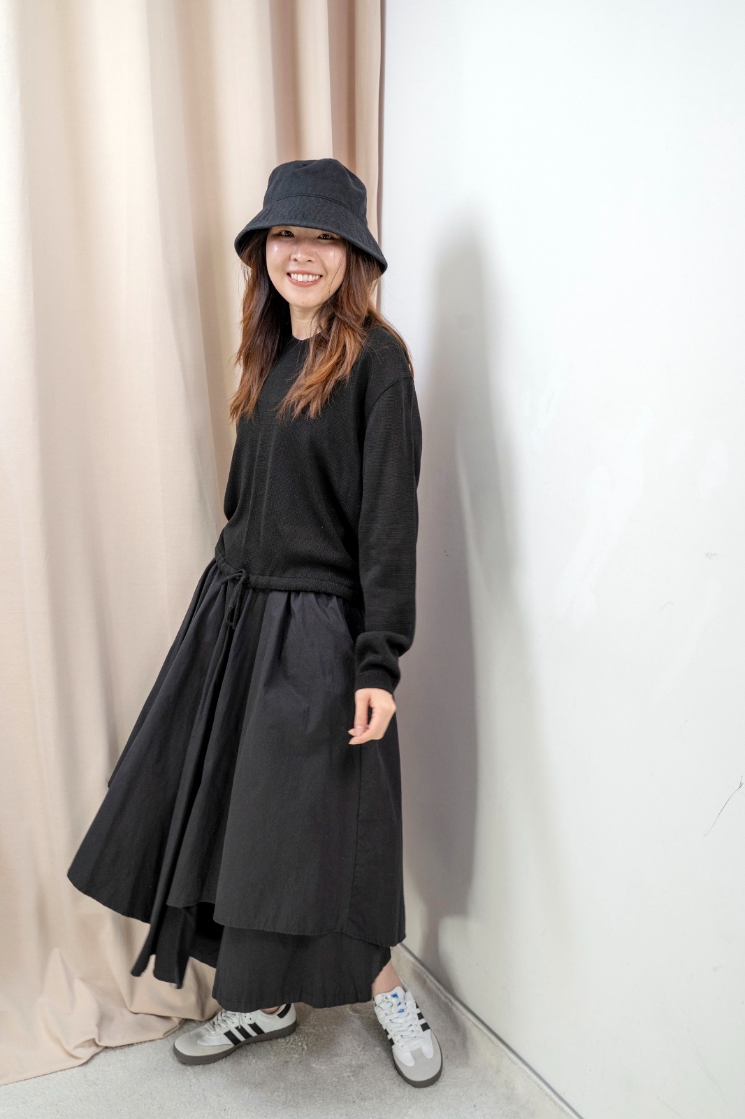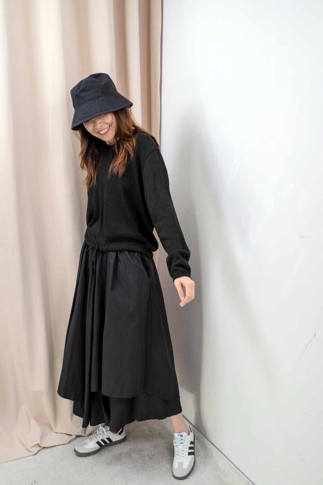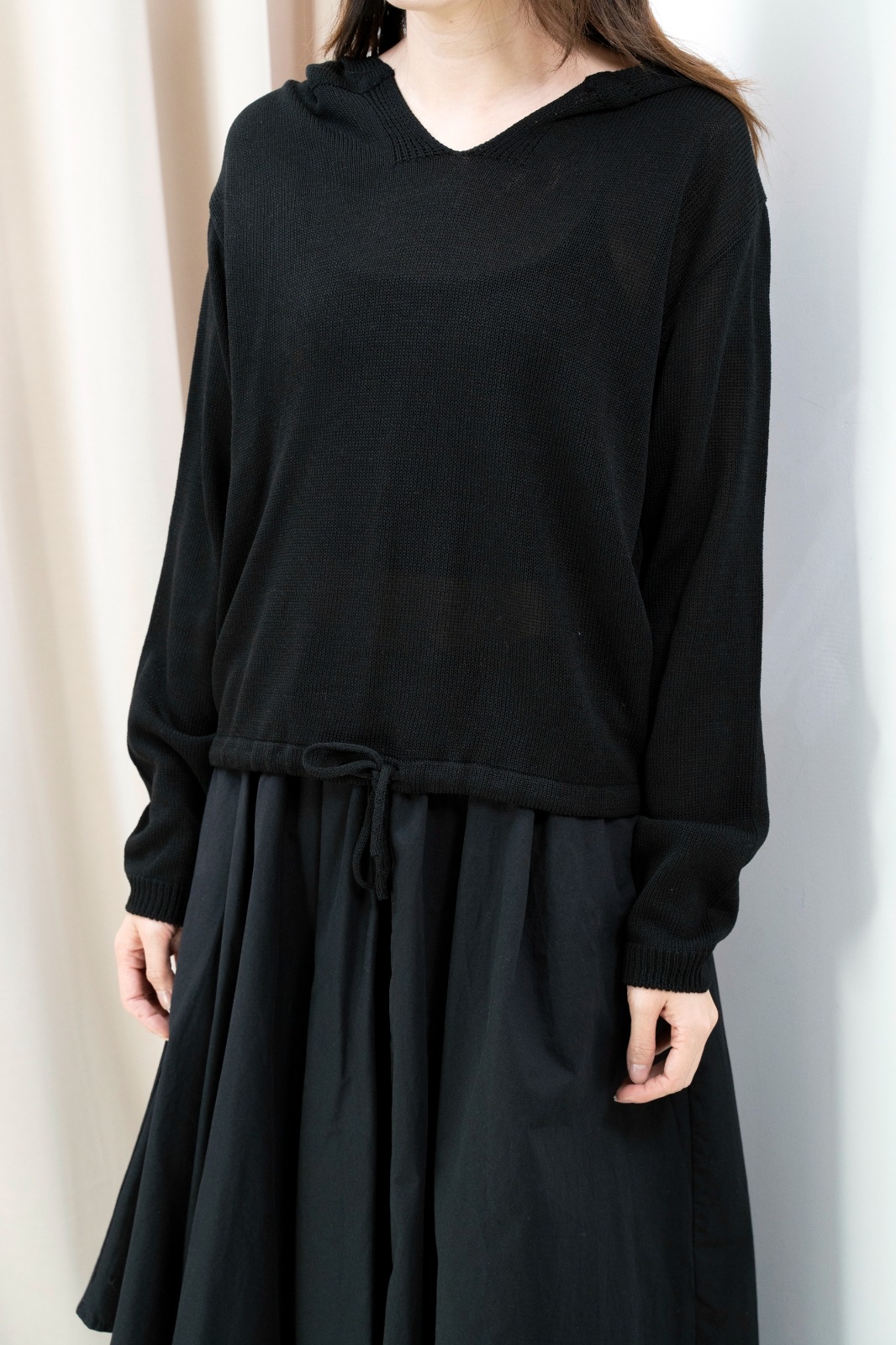 有帽針織上衣(黑色)