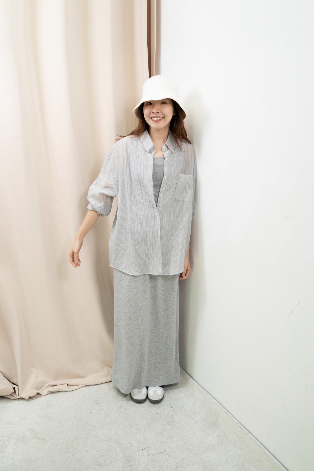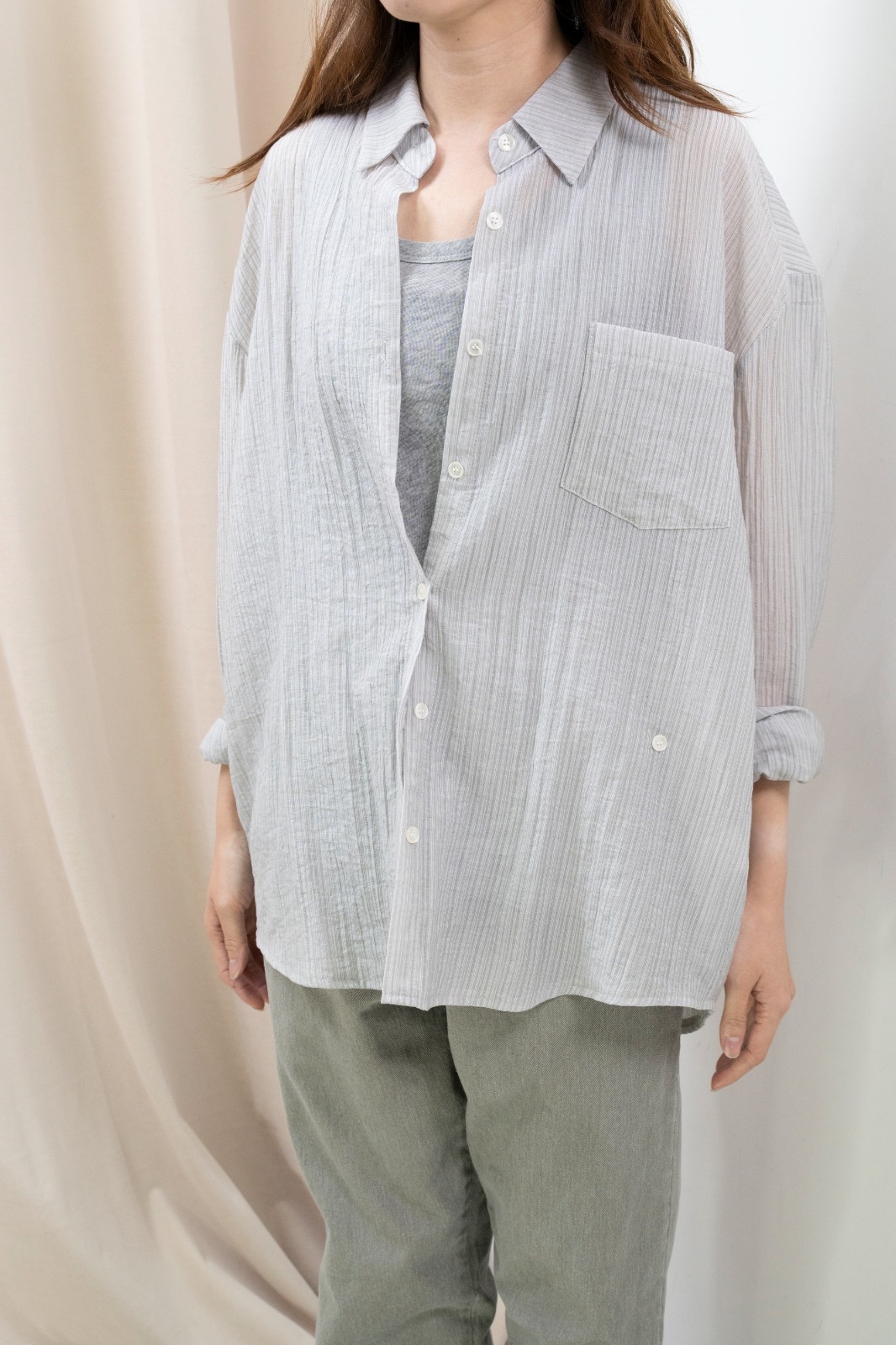 秋冬版!通透直紋恤衫(淺灰間)