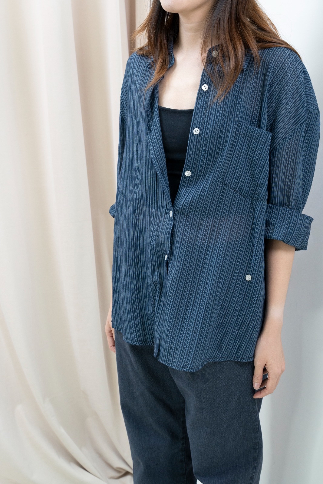 秋冬版!通透直紋恤衫(藍間)