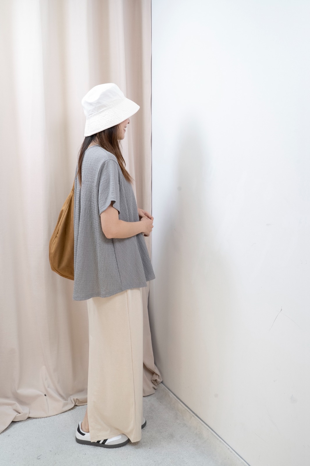 因每人身形比例不同,你可以參考模特兒的身高體型,作為購買之參考。 由於測量方法不同,尺寸數據可能存在1-4CM的偏差。 電腦顯示器不同,商品顏色可能有輕微色差現象。 Free size 平面量度尺寸 胸:65cm 長:65cm Made in Korea Model 160cm *預購商品一般14天*