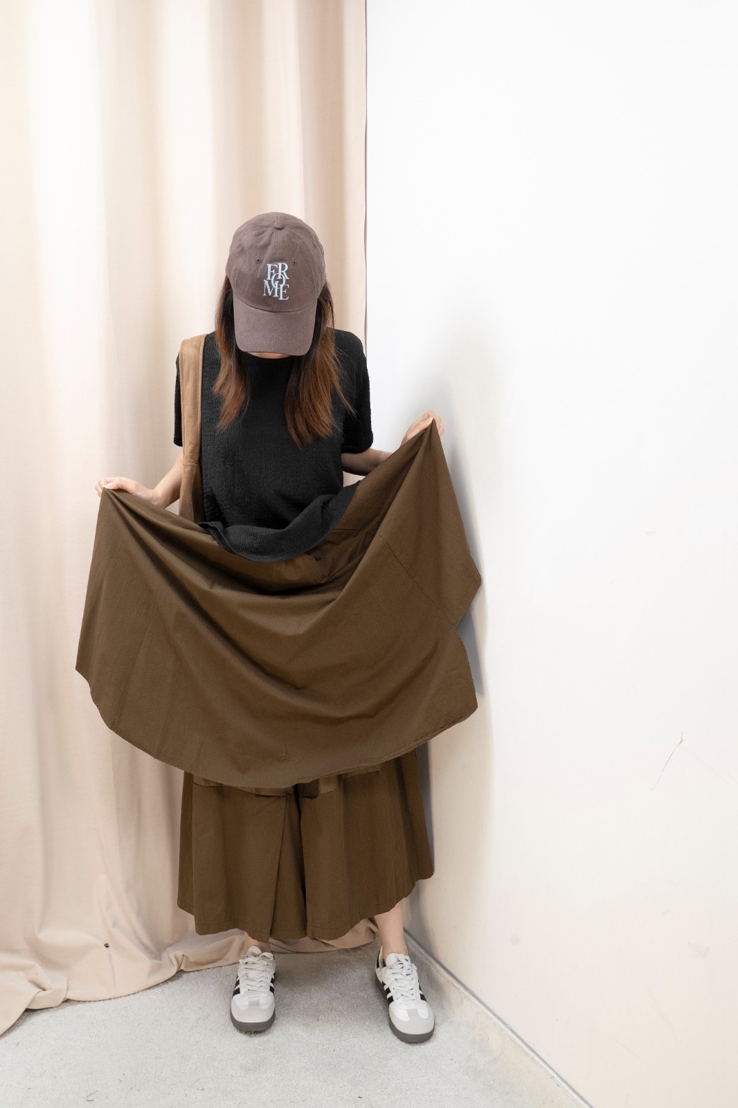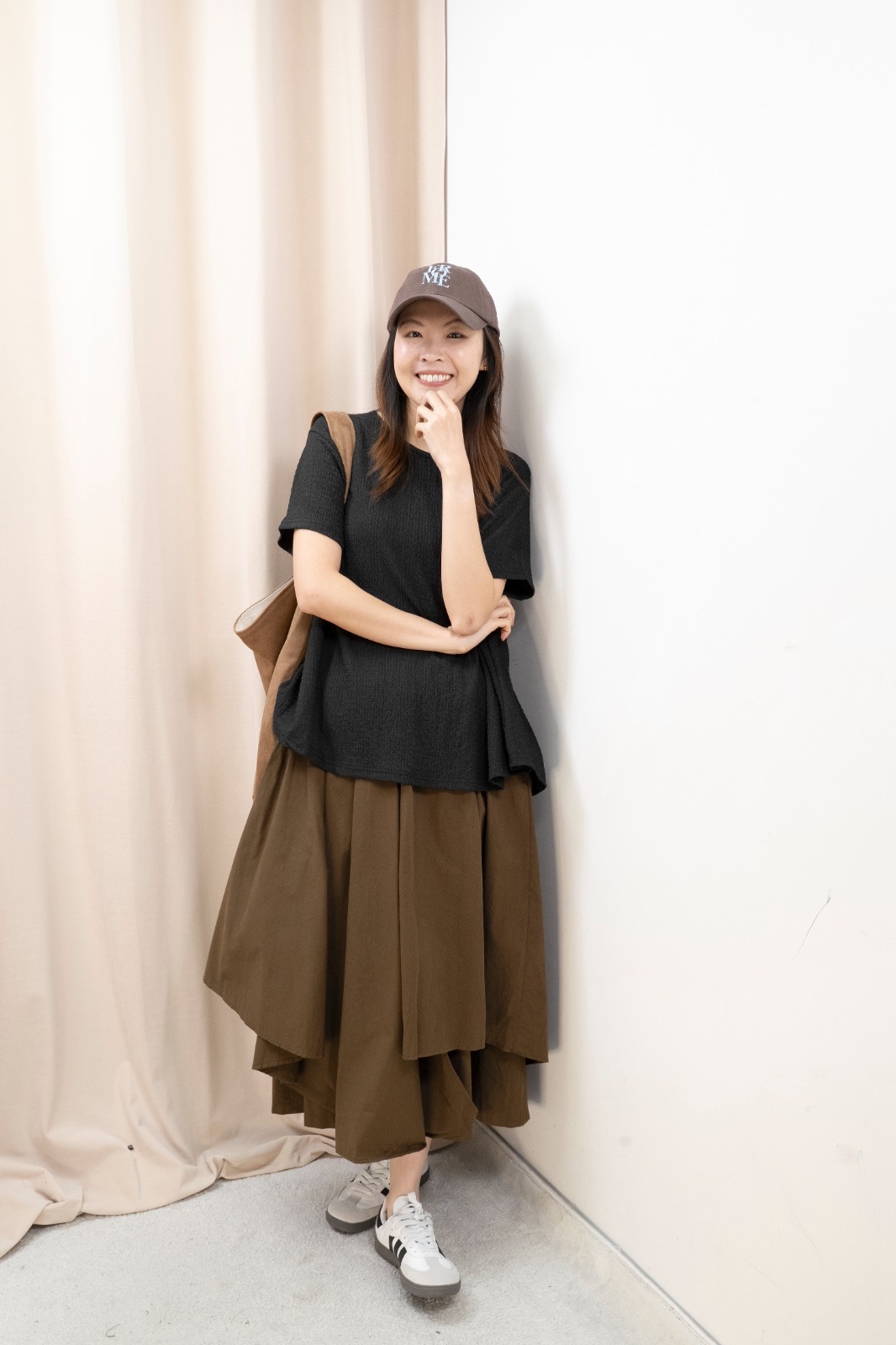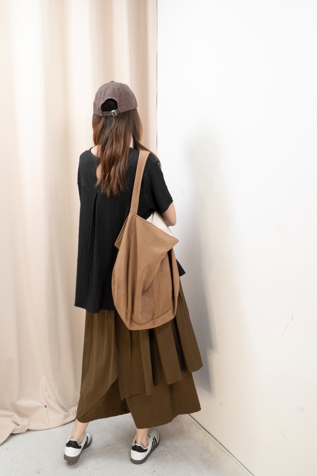 因每人身形比例不同,你可以參考模特兒的身高體型,作為購買之參考。 由於測量方法不同,尺寸數據可能存在1-4CM的偏差。 電腦顯示器不同,商品顏色可能有輕微色差現象。 Free size 平面量度尺寸 腰:34-51cm 臀:85.5cm 長:81cm Made in Korea Model 160cm *預購商品一般14天*