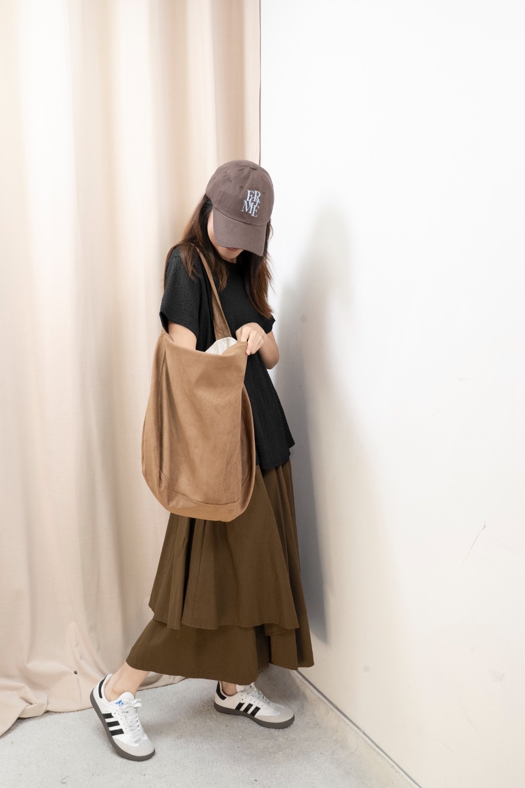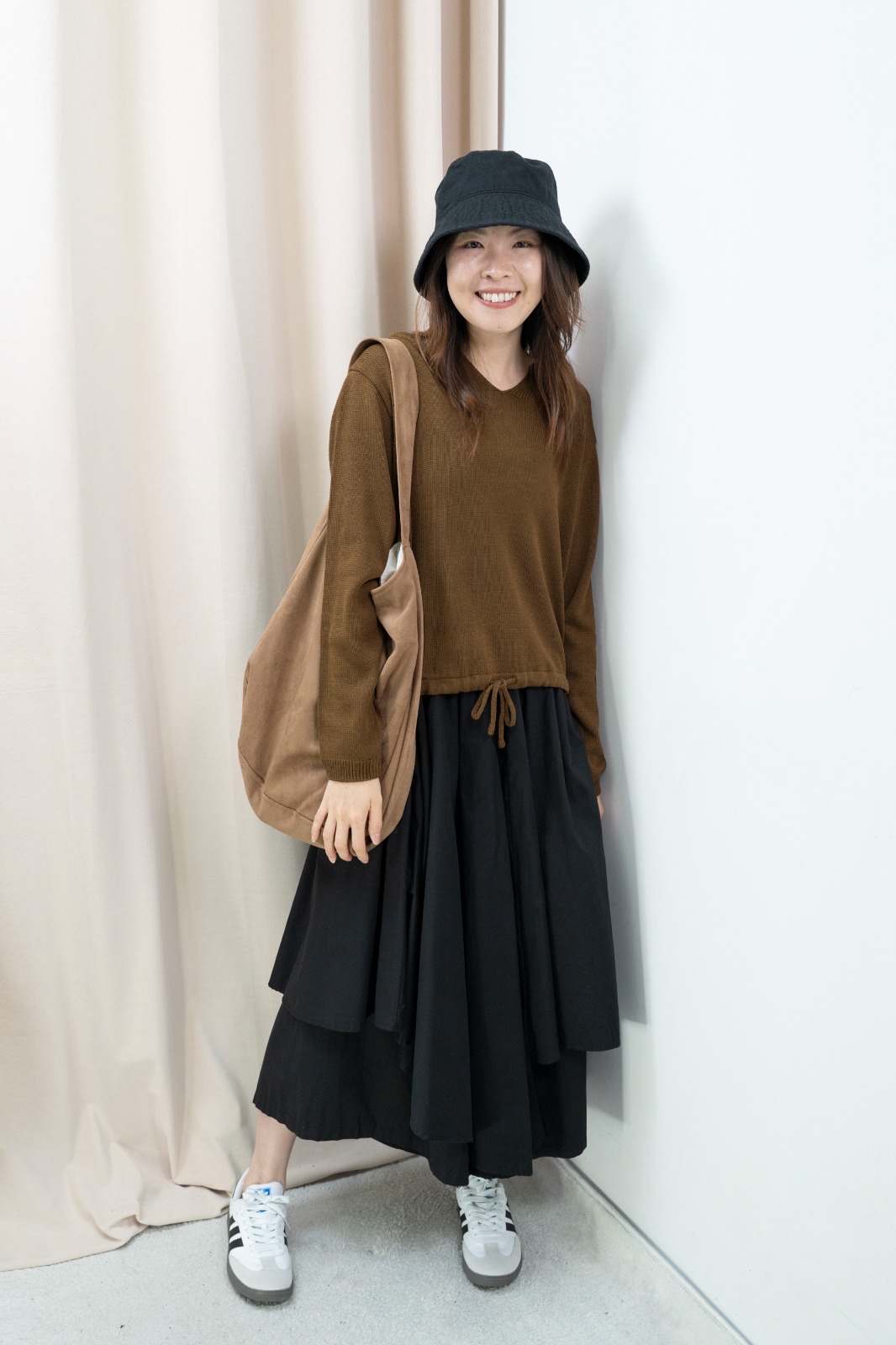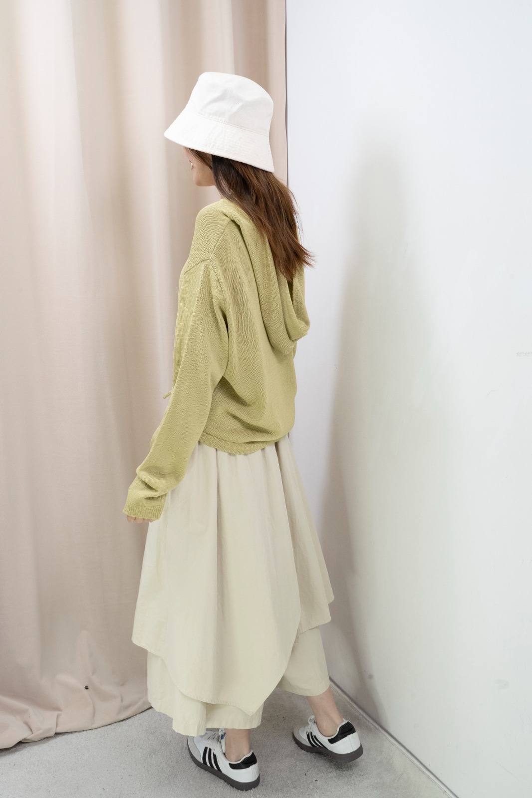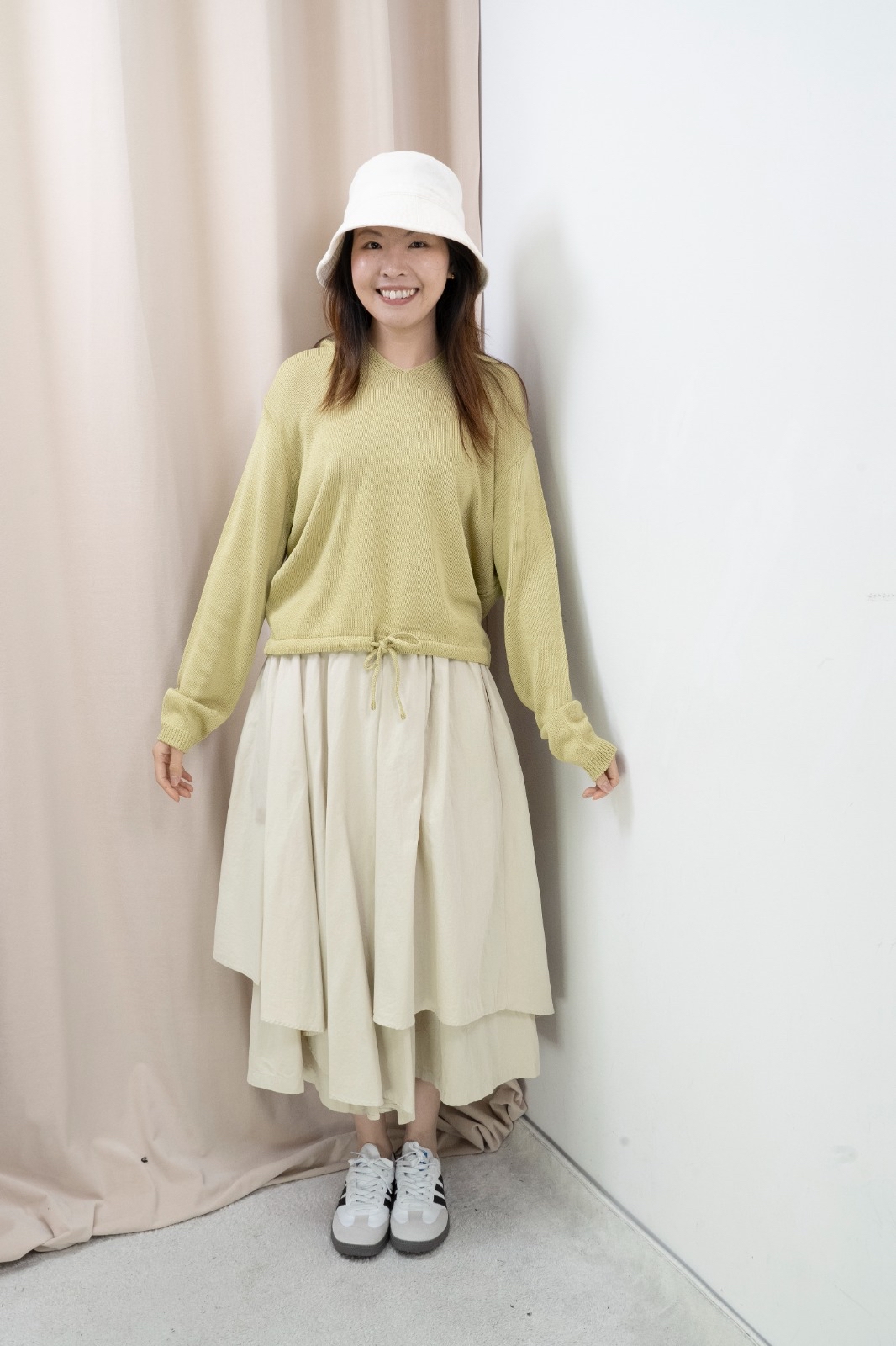 因每人身形比例不同,你可以參考模特兒的身高體型,作為購買之參考。 由於測量方法不同,尺寸數據可能存在1-4CM的偏差。 電腦顯示器不同,商品顏色可能有輕微色差現象。 Free size 平面量度尺寸 腰:34-51cm 臀:85.5cm 長:81cm Made in Korea Model 160cm *預購商品一般14天*