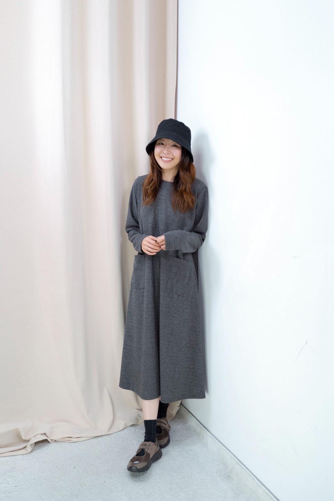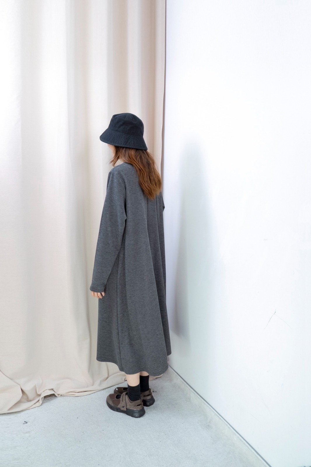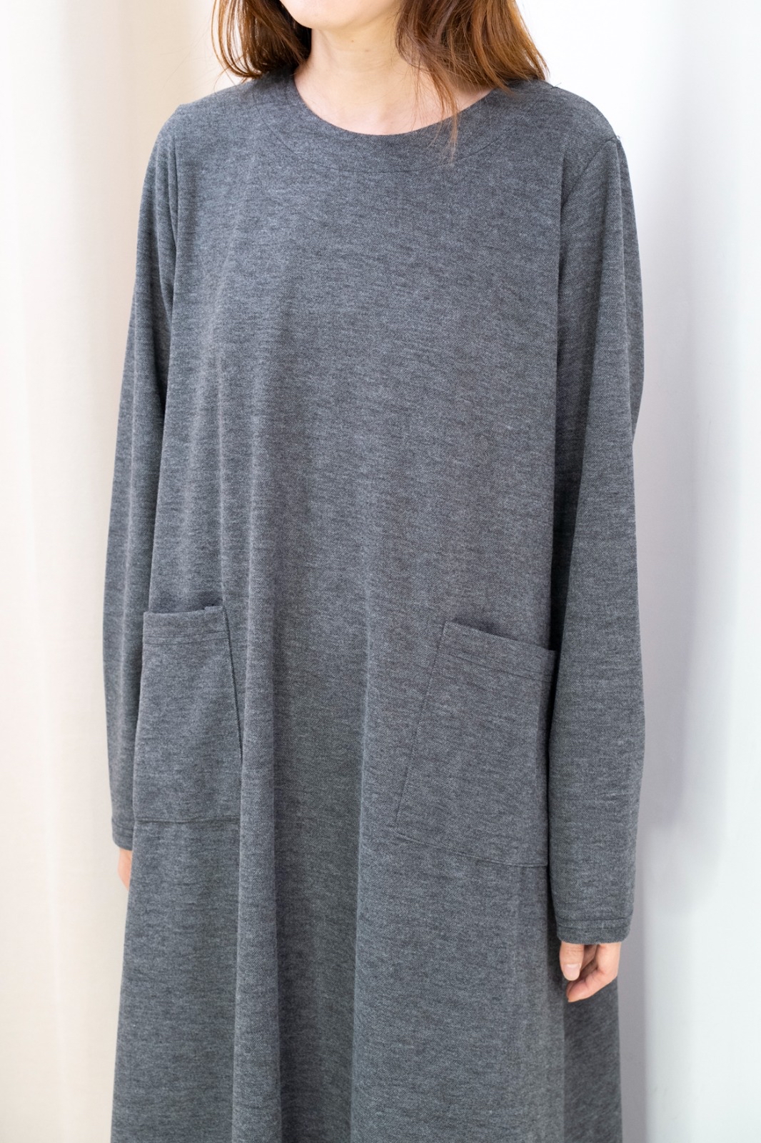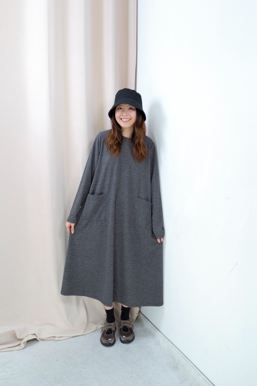 雙口袋順滑料連身裙(深灰色)