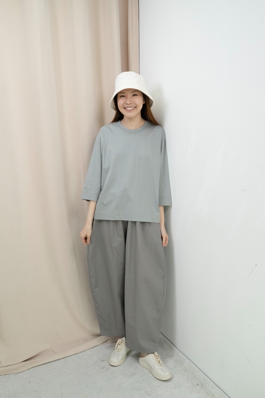 靚板型絲光棉七分袖薄Tee(灰藍綠色)