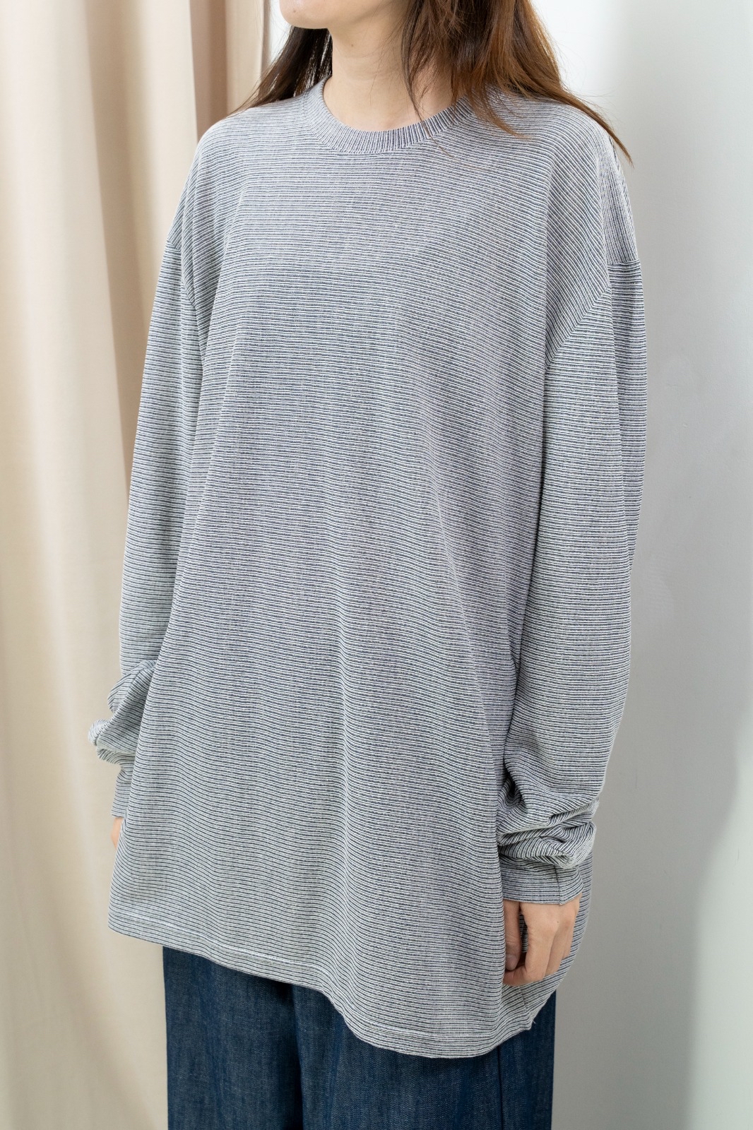 Oversize直角肩針織紋布鬆身Tee(紫藍色)