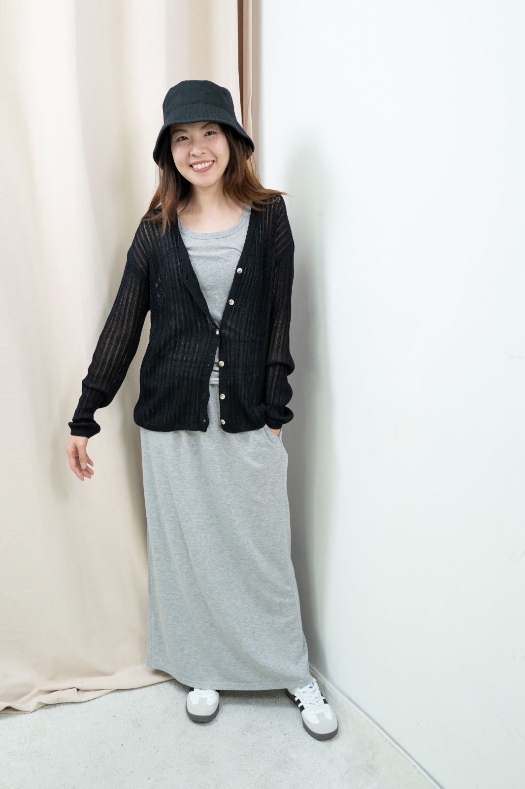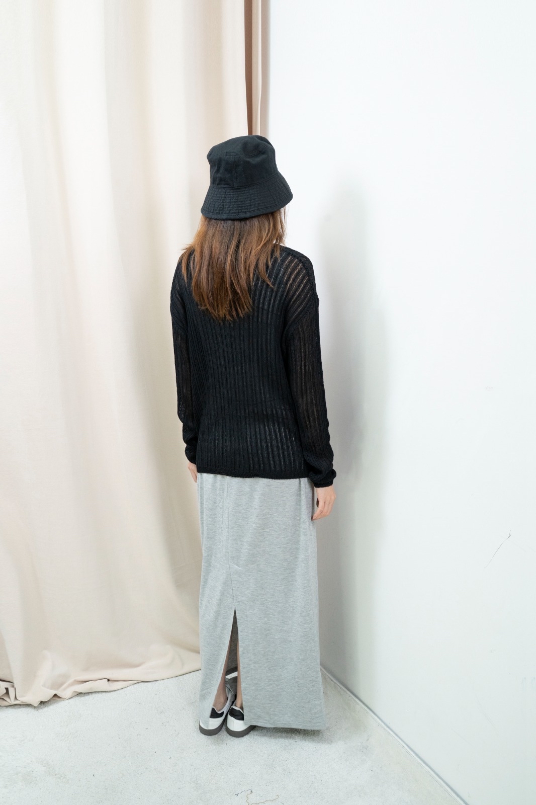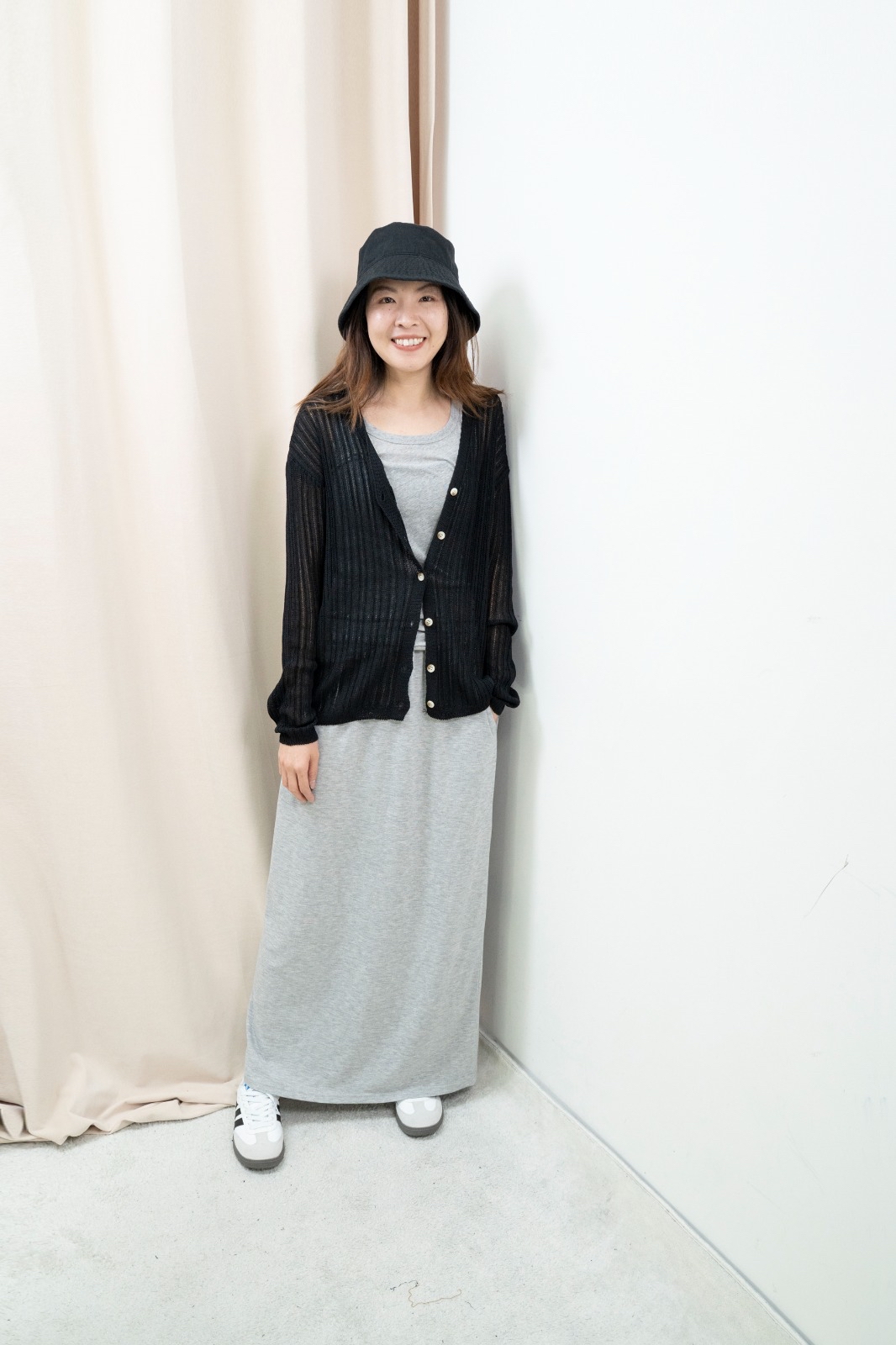 因每人身形比例不同,你可以參考模特兒的身高體型,作為購買之參考。 由於測量方法不同,尺寸數據可能存在1-4CM的偏差。 電腦顯示器不同,商品顏色可能有輕微色差現象。 Free size 平面量度尺寸 胸:56cm 長:62cm Made in Korea Model 160cm *預購商品一般14天*
