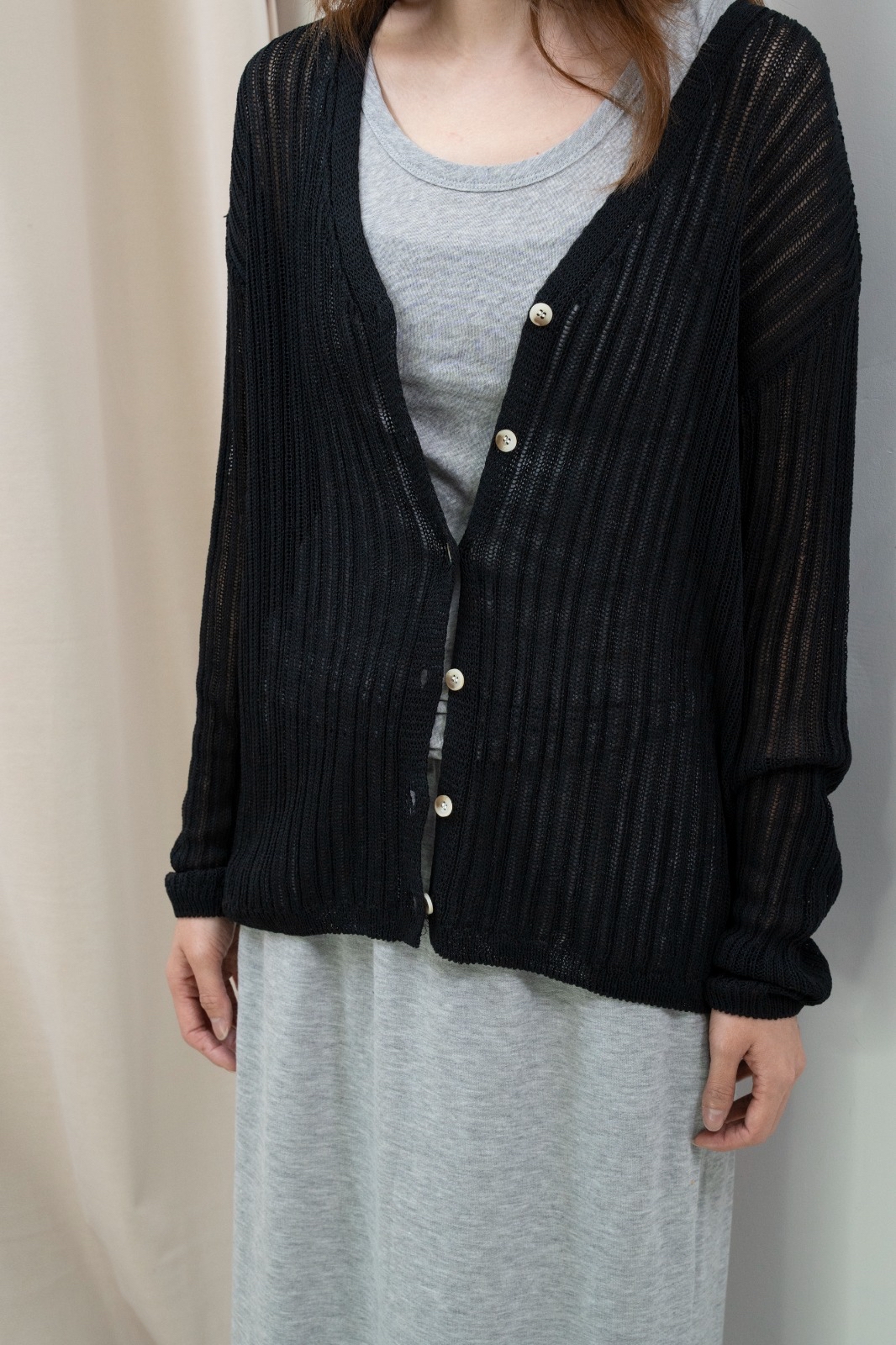 V領直紋針織外套(黑色)